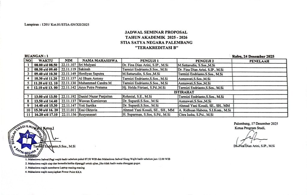 • JADWAL SEMINAR PROPOSAL PERIODE I TAHUN AKADEMIK 2025-2026 22 Desember 2025