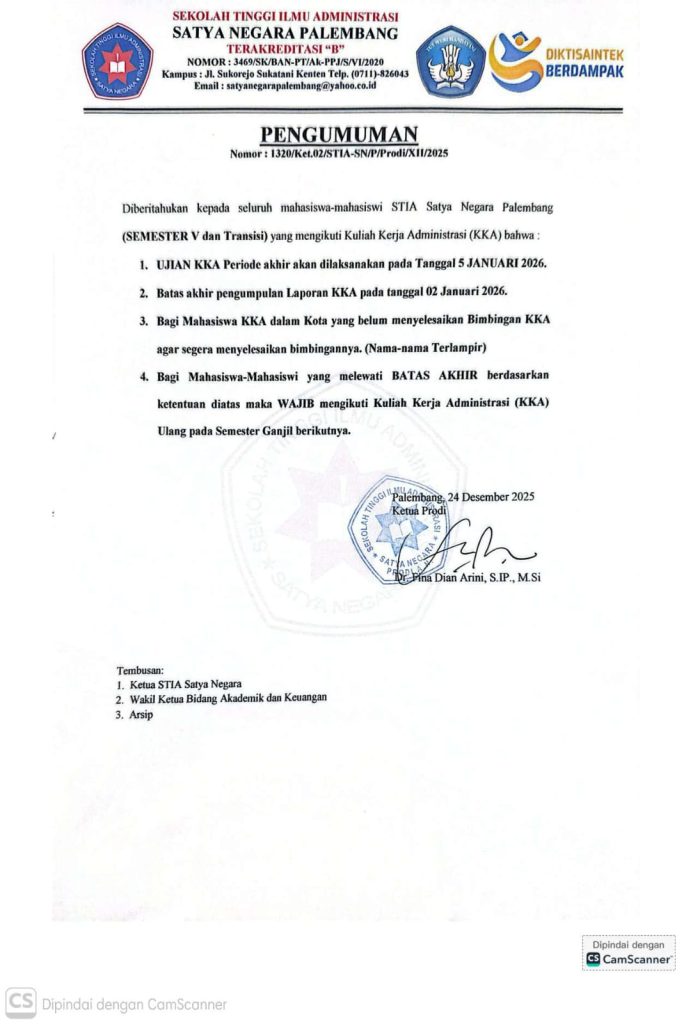 PENGUMUMAN AKHIR PELAKSANAAN UJIAN KULIAH KERJA ADMINISTRASI 24 Desember 2025 | Tidak ada komentar Uncategorized