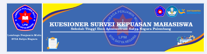 Bersama ini kami sampaikan bahwa STIA Satya Negara Palembang sedang melakukan evaluasi terkait berbagai jenis pelayanan yang telah disediakan oleh STIA Satya Negara Palembang terhadap mahasiswa aktif STIA Satya Negara Palembang. Hal ini dilakukan untuk mendapatkan berbagai informasi mengenai tingkat kepuasan mahasiswa yang selanjutnya akan digunakan untuk perbaikan dan peningkatan mutu layanan STIA Satya Negara Palembang. Oleh karena itu, besar harapan kami agar anda dapat bekerja sama untuk berpartisipasi mengisi kuesioner ini.